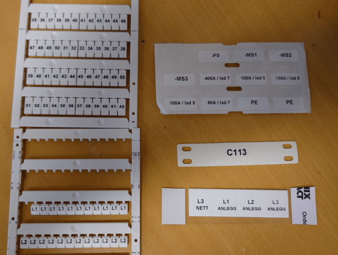 -Klistermerker for TagNr til sikringer og annet utstyr.